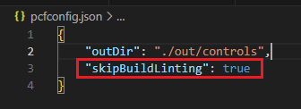 Now, by simply adding a line of code to the pcfconfig.json and setting skipBuildLinting to true…