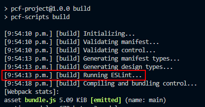 In typical TypeScript projects, linting is generally under your control and can be executed on demand. But in PCF control development, linting is baked into the build process. The pcf-scripts package runs ESLint every single time you call npm run build.